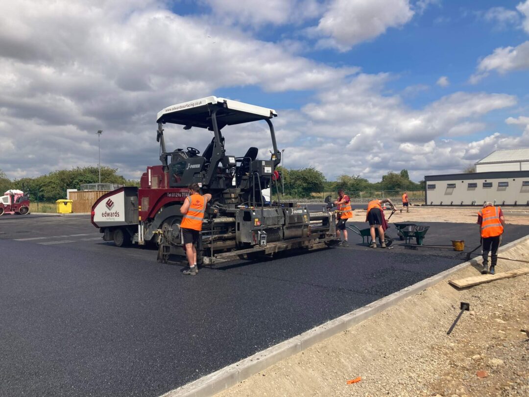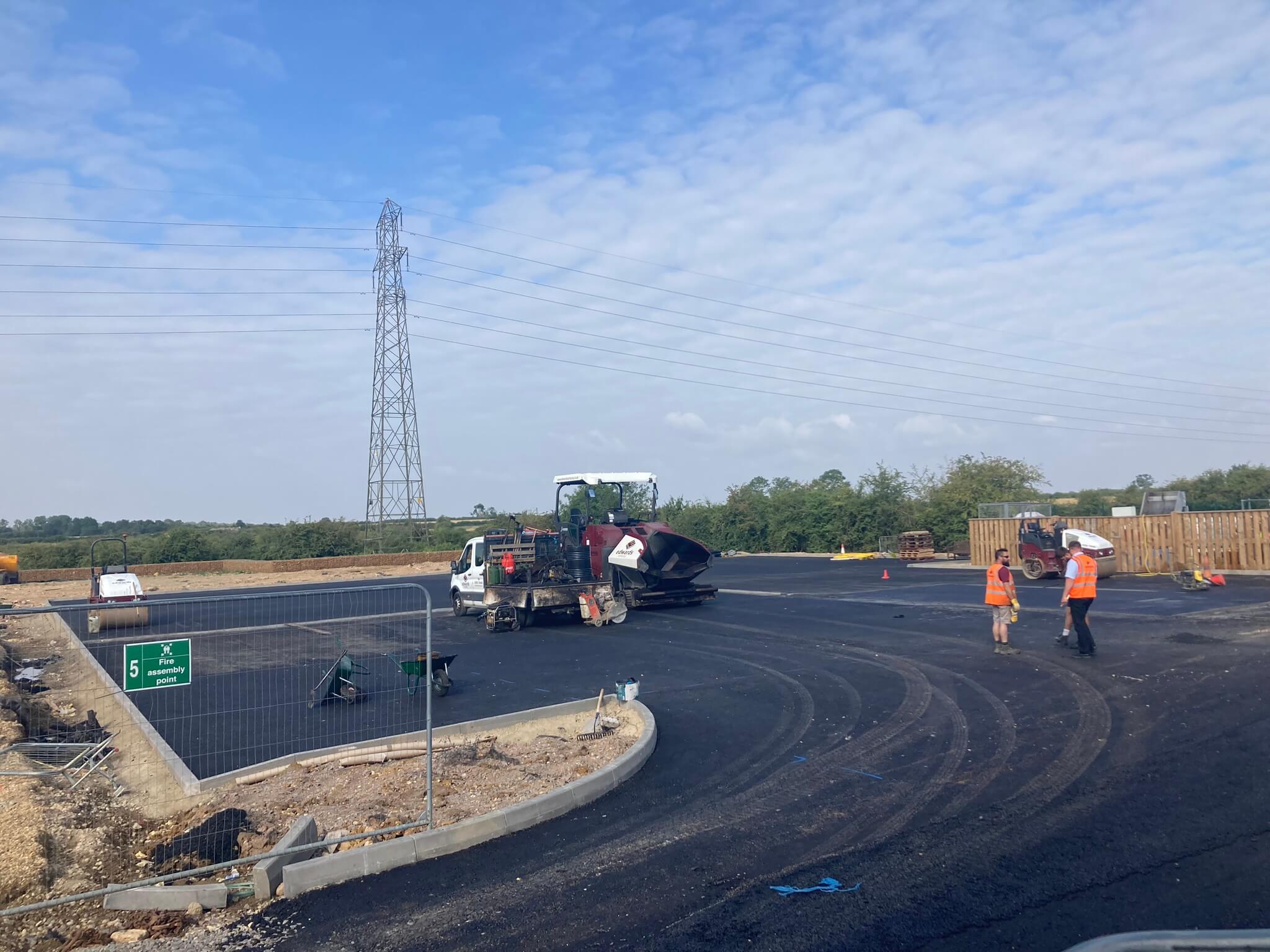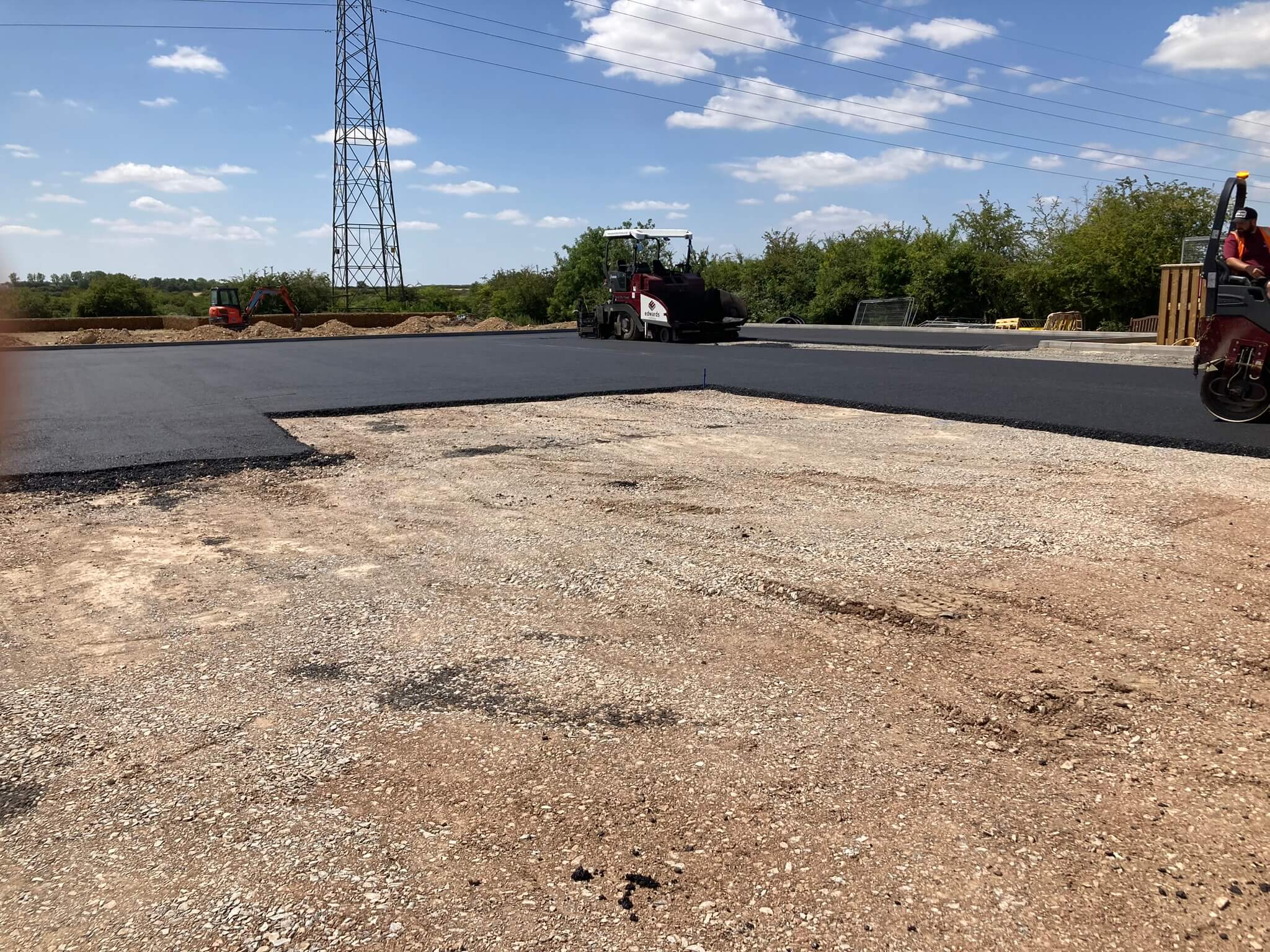 With Type 1 Granite trimmed to the correct levels, we instructed our tarmac surfacing contractor of choice, Edwards Surfacing, to install base course and 10mm SMA to finish the road and car park areas.