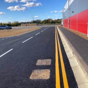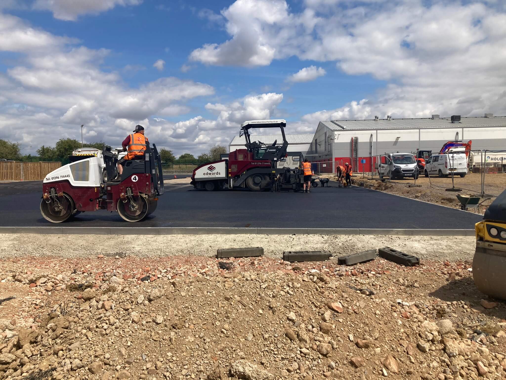 The whole project from start to finish took about 9-10 weeks, and included other aspects including drainage & alteration of manholes, installing new manhole covers etc. With all of the tarmac work complete, we finished the surfacing with line marking including for parking bays, and double yellow lines to restrict parking etc. It was great to be involved in this project, for a longstanding customer of ours, and on our doorstep in Irthlingborough.