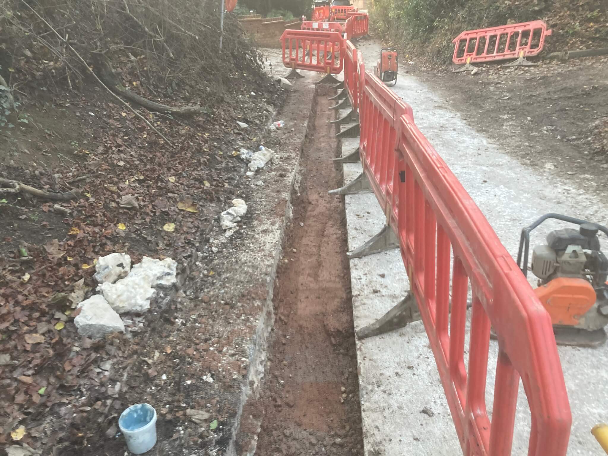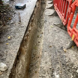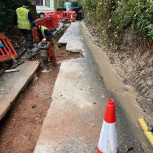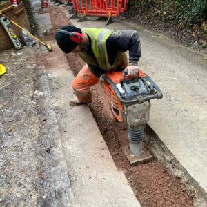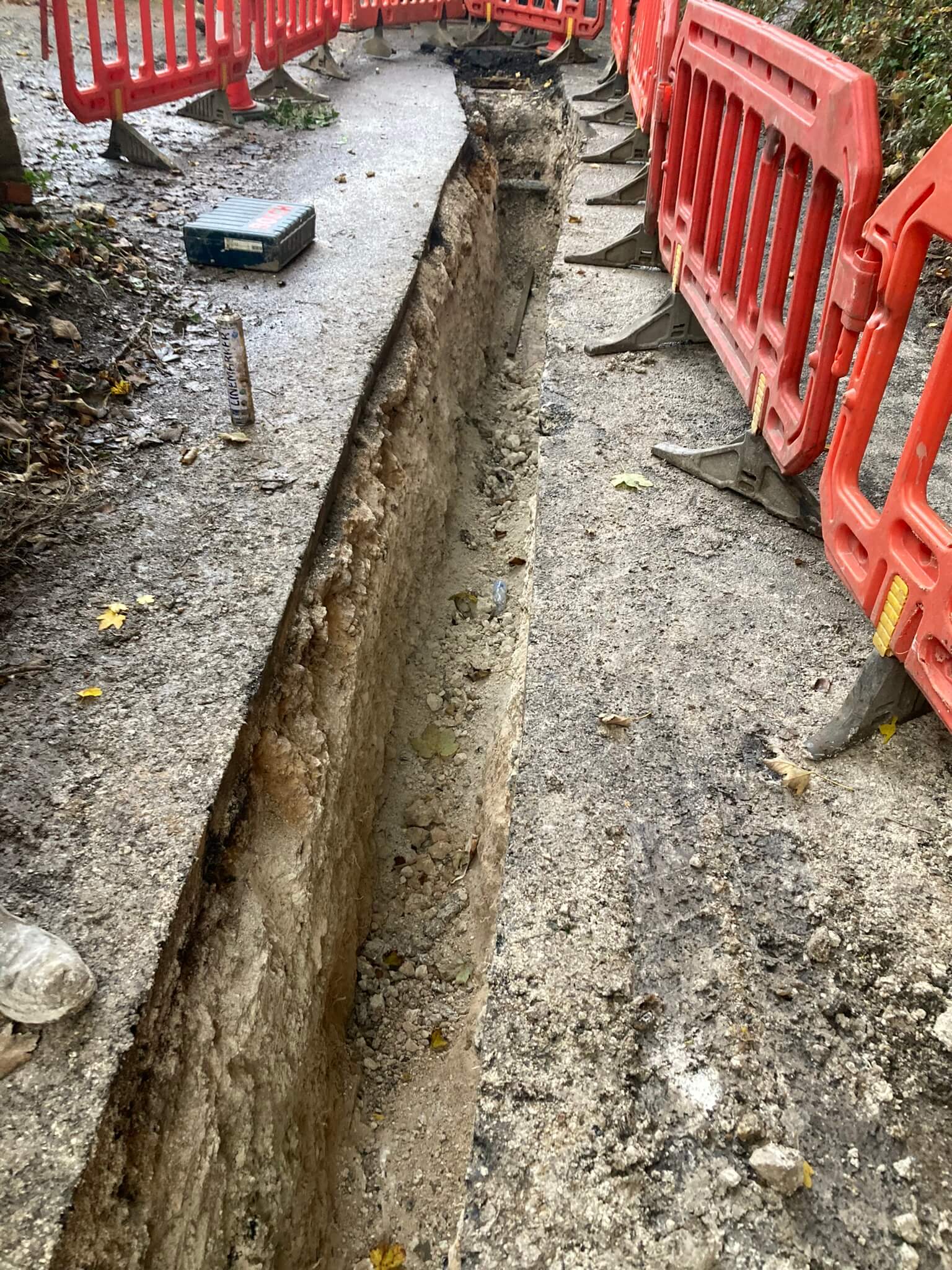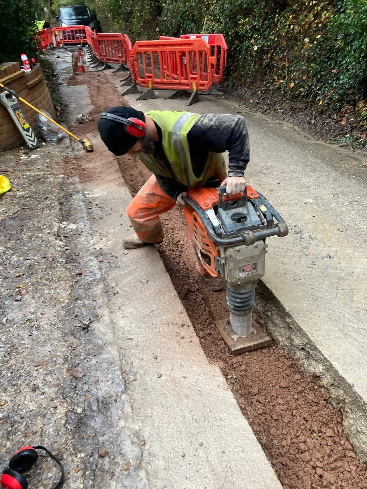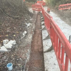 Despite a large section of the road being closed for the duration of the works, we still had to give vehicular access to a handful of residents whilst the works were being carried out. To enable this to happen, we carried out the work in ‘sections’, and residents were able to access their properties from one direction and then from another direction, after trenches were backfilled and reinstated.