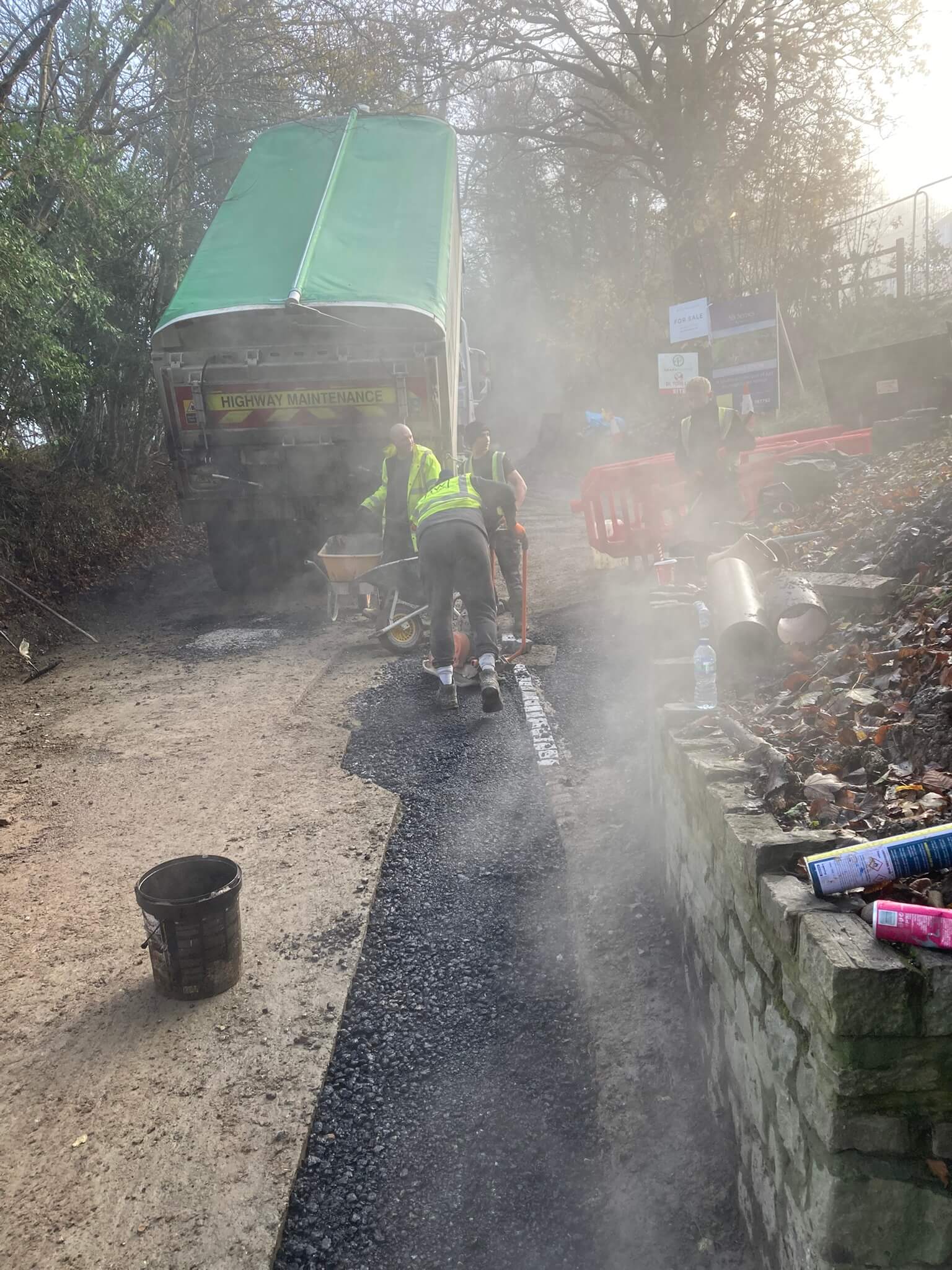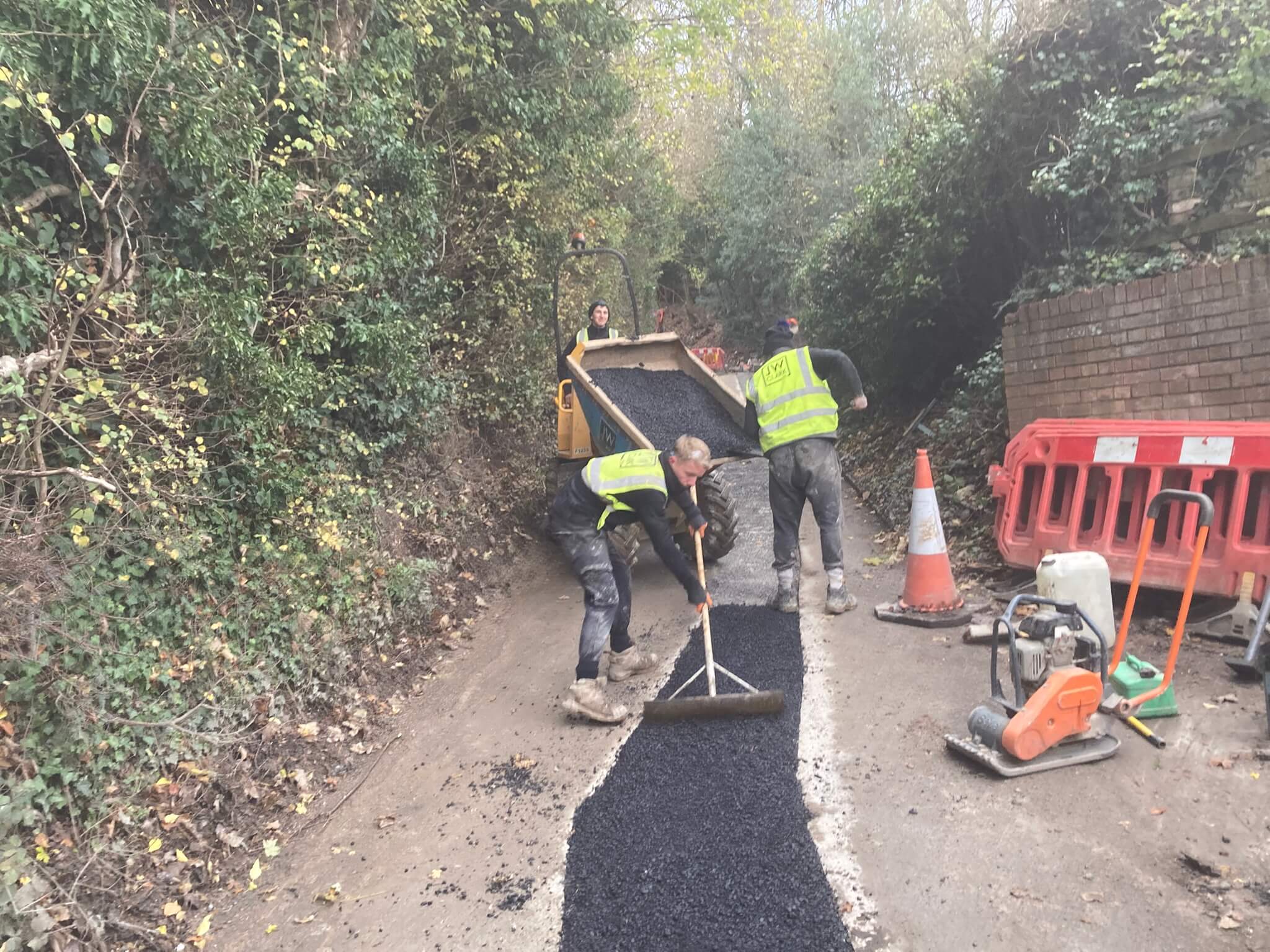 We started at the bottom of the hill and slowly worked our way up. We reinstated in sections, building manholes as we went and finishing with 150mm D400 manhole covers.