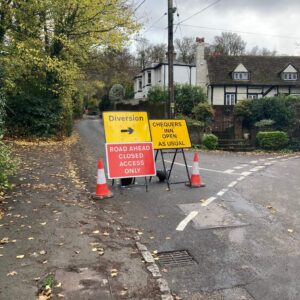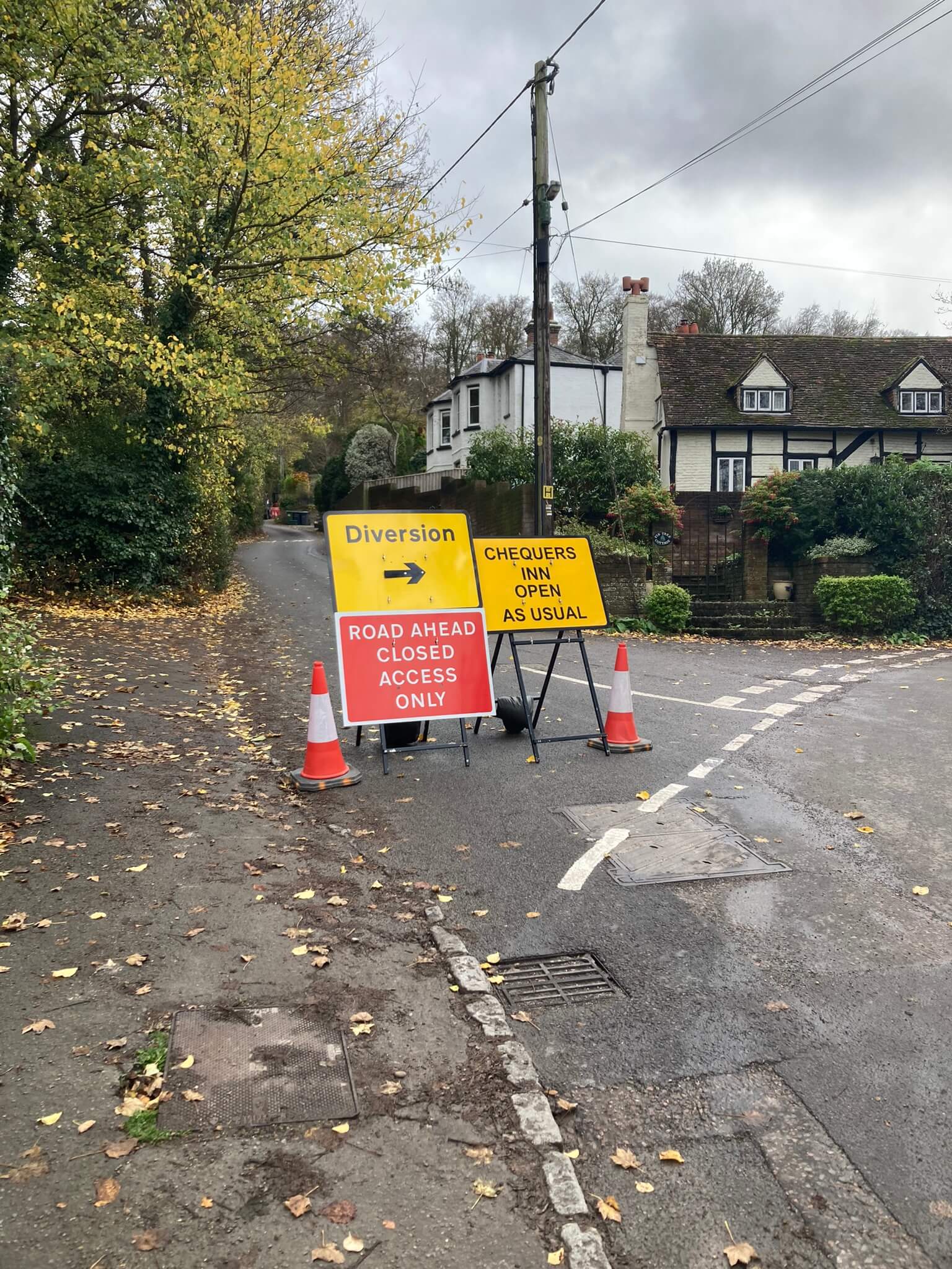 Highways agreed to our need to close the road, and a diversion route was agreed. In the days leading up to the start of the road closure, a local pub owner was particularly worried about any loss of trade, as his pub was at one end of the closure. We agreed with Highways and with our third-party traffic management company, that extra signage would be put out at either end of the diversion, advising people that the pub was still open for business.